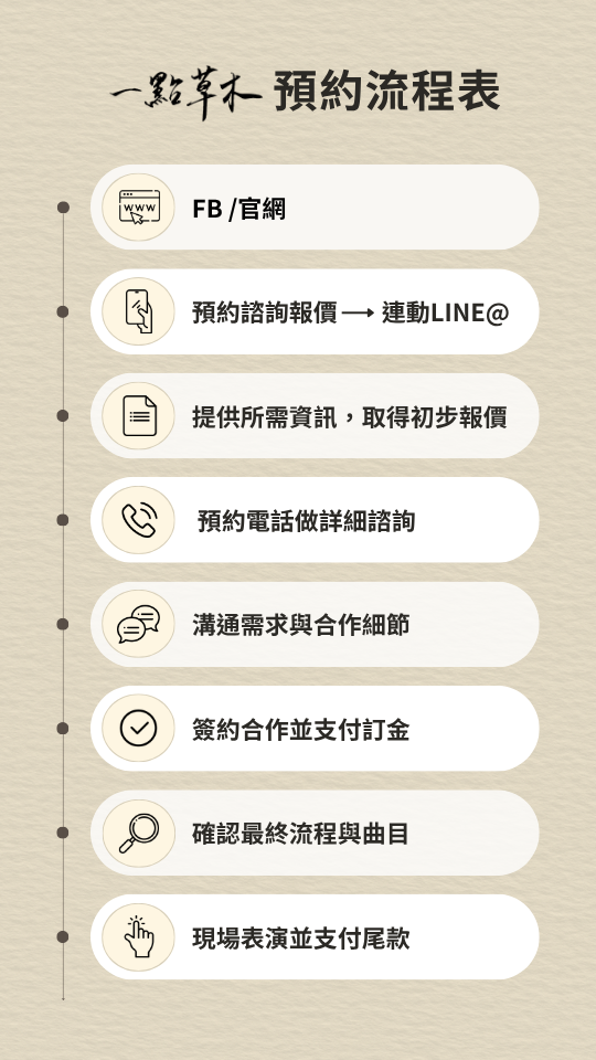 可以,我們會跟你討論演出歌單,也根據你想要的風格來安排曲目
